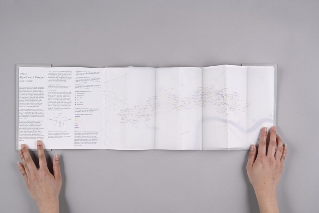 Walking from Whitechapel to Notting Hill Gate, Tanahara alternated every fifteen minutes between following Google Maps’ shortest route and walking a dice-determined path. She documented the algorithm’s suggestions — restaurants, ads, personalised recommendations — alongside her own observations: objects, light, architecture, incidental details. What makes the project compelling is precisely how it troubles its own binary. Indeed, the ‘random’ layer reveals its own patterns, whether that be attention shaped by neighbourhood context, personal history, or the visual training we’ve all absorbed through years of algorithmic curation. Rather than offering easy opposition, the work forces us to confront whether attention can ever be truly random.